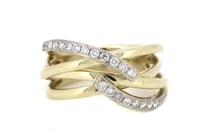 10K YELLOW GOLD AND DIAMOND, CROSS OVER BAND...