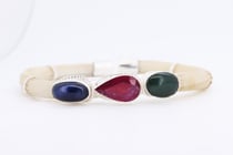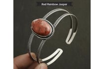 925 SILVER PLATE RED RAINBOW JASPER GEMSTONE CUFF...