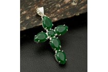925 SILVER SIMULATED EMERALD CROSS PENDANT...