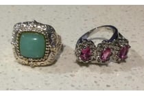 2 X SILVER CRYSTAL RINGS SIZE 6.75...