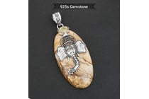 925 SILVER ELEPHANT ON GEMSTONE PENDANT...