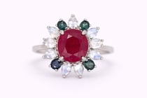 NATURAL RUBY, SAPPHIRE & MOONSTONE RING ON 925...