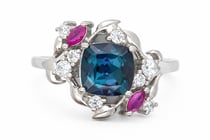 LAB GROWN ALEXANDRITE & NATURAL RUBY RING ON 925...