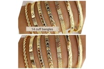 SET OF 14 ENGRAVED GOLD COLOR CUFF BANGLES...