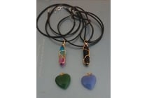 4 X CRYSTAL ASSORTED PENDANTS WITH 2 BLACK CORDS...