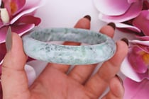 NATURAL BURMESE JADE BANGLE ON 925 SILVER - WITH...