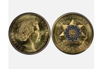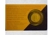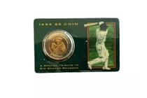 BRADMAN 5 DOLLAR BI METAL COIN ON CARD OF ISSUE...
