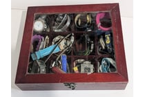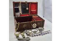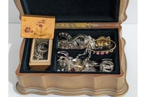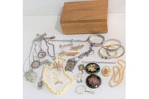 TIMBER JEWELLERY BOX WITH JEWELLERY COLLECTION...