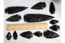 DOZEN OBSIDIAN STONE ARROWHEADS Condition:...