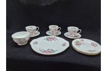 TEA SET WITH DECORATIVE COASTERS AND CUT GLASS...