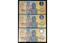 THREE CONSECUTIVE AUSTRALIAN TEN DOLLAR BANKNOTES...