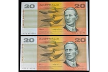 TWO SETS OF CONSECUTIVE AUSTRALIAN TEN DOLLAR...