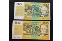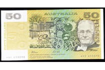 AUSTRALIAN FIFTY DOLLAR BANK NOTE WITH ERROR,...