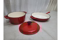 Cast Iron Skillet & Pot, Red/White Dimensions:...