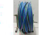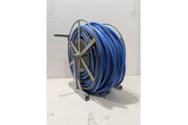 Industrial-style wall-mounted hose reel used for...