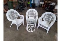 White rattan cane outdoor chairs and glass top...