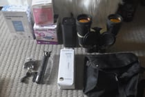 Binoculars in case, 7x50, orange coated lenses...