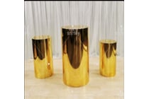 RRP $700 3pcs Glossy Gold Round Metal Plinth...