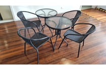 2x Outdoor Round Tables and 4x Wicker Style Chairs