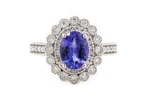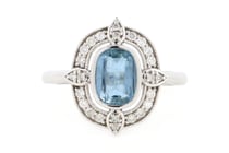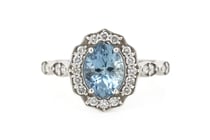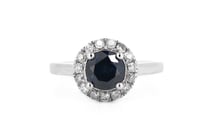 14K WHITE GOLD, BLUE DIAMOND AND DIAMOND, HALO...