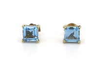 9K YELLOW GOLD AND BLUE TOPAZ, STUD EARRINGS....