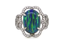 STERLING SILVER, OPAL SIMULANT AND ZIRCONIA RING....