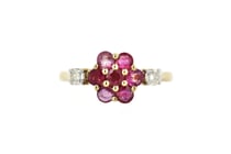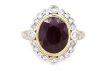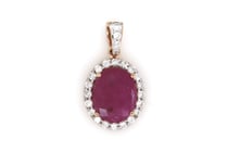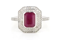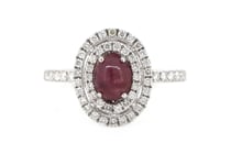 14K WHITE GOLD, RUBY AND DIAMOND, DOUBLE HALO...