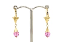 18K YELLOW GOLD, PINK GEMSTONE, DROP EARRINGS....