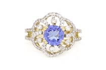 14K YELLOW GOLD/RHODIUM, BLUE SAPPHIRE AND...