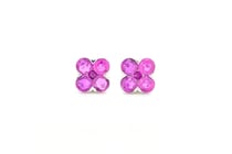 9CT WHITE GOLD CEYLON RUBY FLORAL STUD EARRINGS...