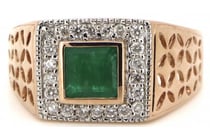 14CT ROSE GOLD, EMERALD AND DIAMOND, GENTS...
