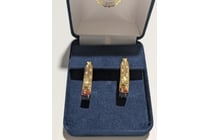9CT GOLD & PURPLE/RED STONE EARRINGS Marked...