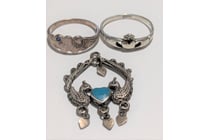 STERLING SILVER CLADDAGH RING, CIGNET RING & BIRD...
