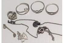 STERLING SILVER RINGS, PADLOCK, CHARMS & NECKLACE...