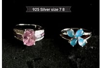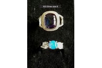 2 X 925 SILVER RINGS BLUE CREATED FIRE OPAL AND...