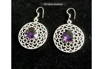 925 SILVER DROP EARRINGS WITH AMETHYST CRYSTALS...
