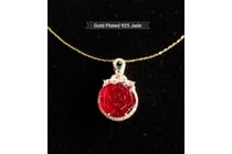 RED CARVED ROSE JADE PENDANT WITH A GOLD...