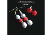 2 PAIRS OF 925 SILVER FRESHWATER PEARLS AND RED...