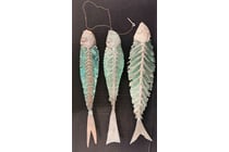 THREE GLASS FISH SCULPTURES WITH CLAY...