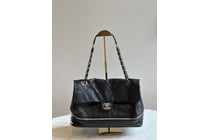 CHANEL BLACK LARGE CALFSKIN EXPANDABLE FLAP BAG...