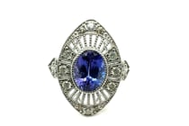 PT950 MARQUISE CUT TANZANITE AND DIAMOND RING T...