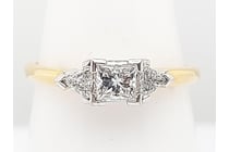 14CT YELLOW GOLD EMERALD CUT EMERALD AND DIAMOND...