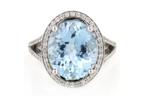14CT WHITE GOLD AQUAMARINE AND DIAMOND DRESS RING...