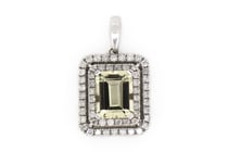 9CT WHITE GOLD GREEN AMETHYST AND DIAMOND DROP...