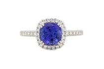 14K WHITE GOLD, TANZANITE AND DIAMOND, HALO RING....