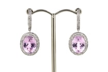 14K WHITE GOLD, KUNZITE AND DIAMOND, DOUBLE HALO...