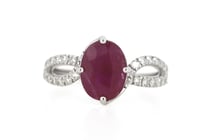 14CT WHITE GOLD RUBY AND DIAMOND SPIRAL RING...