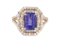 14K ROSE GOLD, TANZANITE AND DIAMOND, HALO DOUBLE...