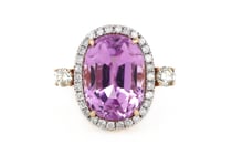 14K ROSE GOLD, 17.54CT KUNZITE AND DIAMOND, HALO...