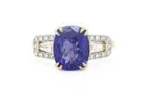 14K YELLOW GOLD, TANZANITE AND DIAMOND, DRESS...